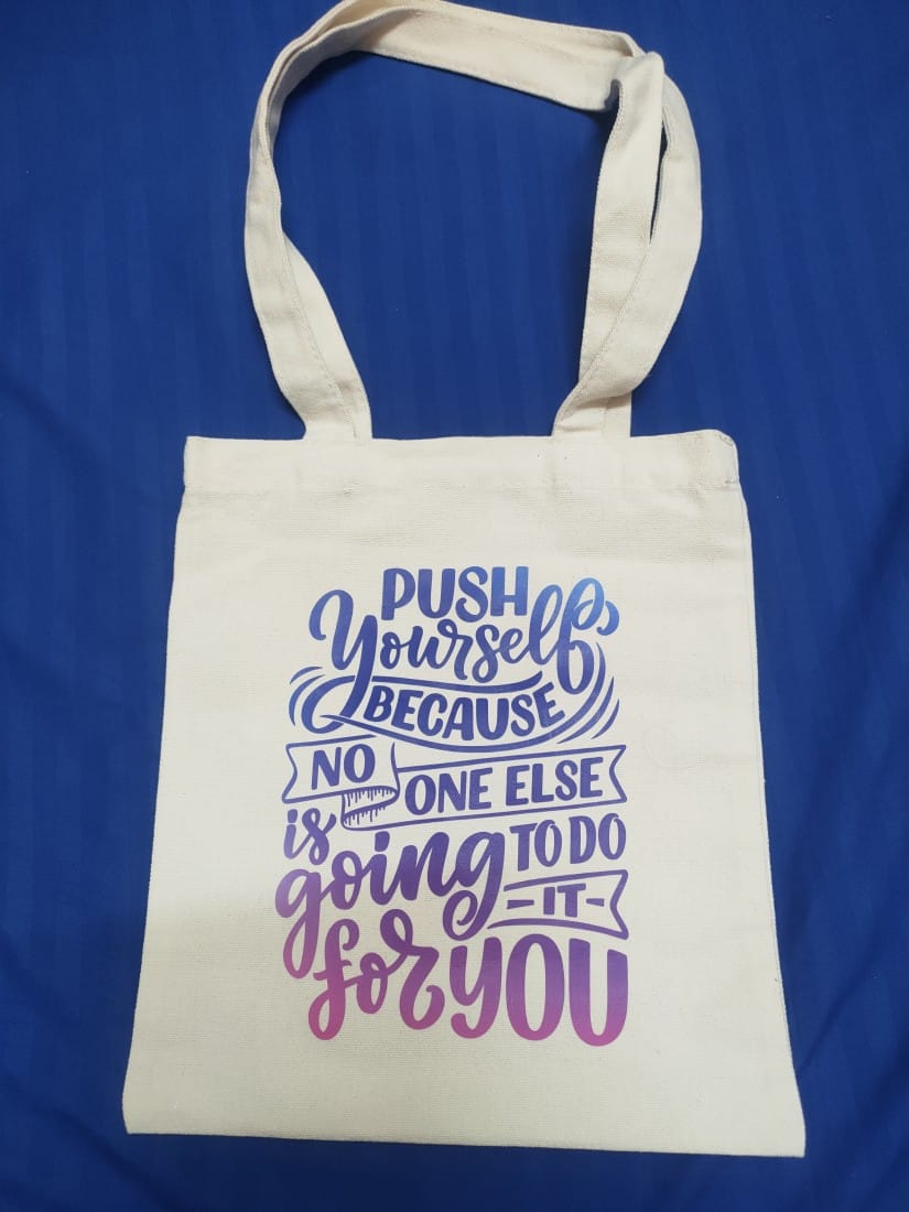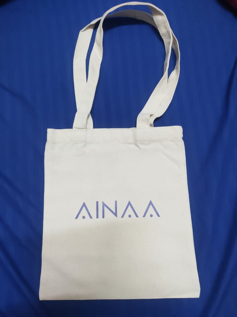Ditch the plastic and carry your essentials in style with our eco-friendly canvas tote bag. This aesthetic tote bag features comfortable double handles and two eye-catching designs. On one side, proudly display our AINAA logo. On the other hand, find inspiration with a motivational quote to keep you going. It’s a perfect companion for your telekung and your daily essentials.