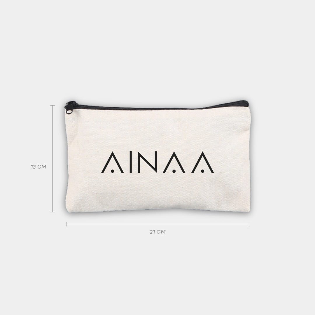 Ainaa Zip Pouch is a chic and practical accessory for your daily essentials. Made from durable cotton canvas, this 21 cm by 13 cm pouch is perfect for organizing skincare products, makeup, and more. The sleek AINAA logo adds a touch of elegance, while the secure zipper closure keeps your items safe. Whether used as a clutch or stored in a larger bag, this eco-friendly pouch complements any style. A perfect blend of sustainability and sophistication designed to meet your everyday needs.